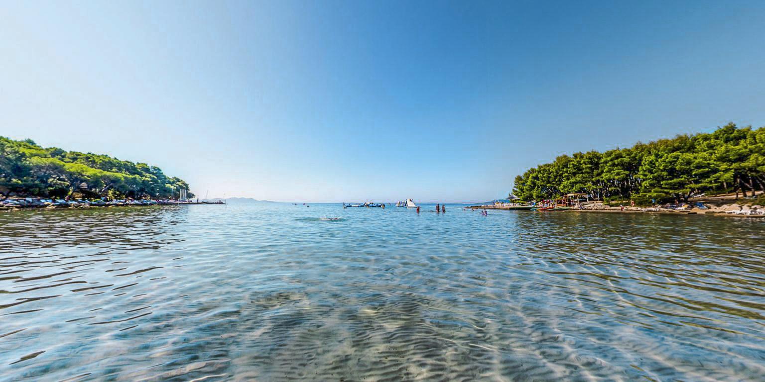 Nedvojbeno najljepša plaža u Pakoštanima je plaža u Pine Beach resortu. Ovaj prirodni pješčani dragulj je sve što možete poželjeti od plaže. Smještena u prirodnoj uvali, plitka je, dobro zaštićena od valova i vrlo postupno se produbljuje. Zbog ove sjajne značajke možete se lako ohladiti u plitkim pješčanim područjima, a sasvim je sigurno pustiti malu djecu da sama uživaju u vodi, jer čak i mališani mogu stajati u vodi, daleko od obale.