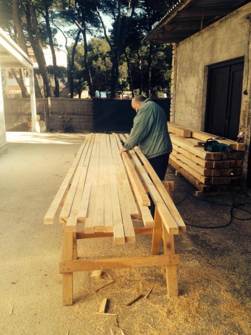 Elk jaar, als de winter op zijn einde loopt, komen er een aantal mensen uit Pakoštane naar Pine Beach Resort om aan een van de belangrijkste taken van ons bedrijf te beginnen. Die dag springt er een vonkje over dat in onze harten het vreugdevuurtje laat smeulen over de weer naderende zomer. Na de stille winter waarin je alleen de wind hoort die de bomen heen en weer wiegt en de golven die op de rotsen slaan, begint de zon ons weer breed toe te lachen. Je ziet mensen met grote plattegronden door het resort lopen druk discussiërend over welke bungalow onderhoud nodig heeft, uit de werkplaats hoor je de timmerman weer fluiten terwijl hij hout en balken aan het meten is, het nieuwe riet voor de daken staat al klaar en je voelt de spanning voor het aankomende seizoen.